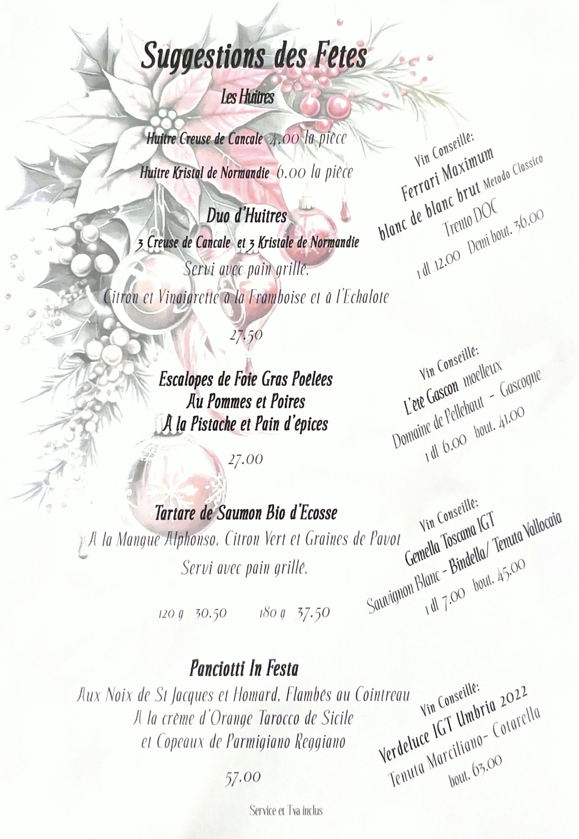 de la cuisine italienne et traditionnelle du Château.